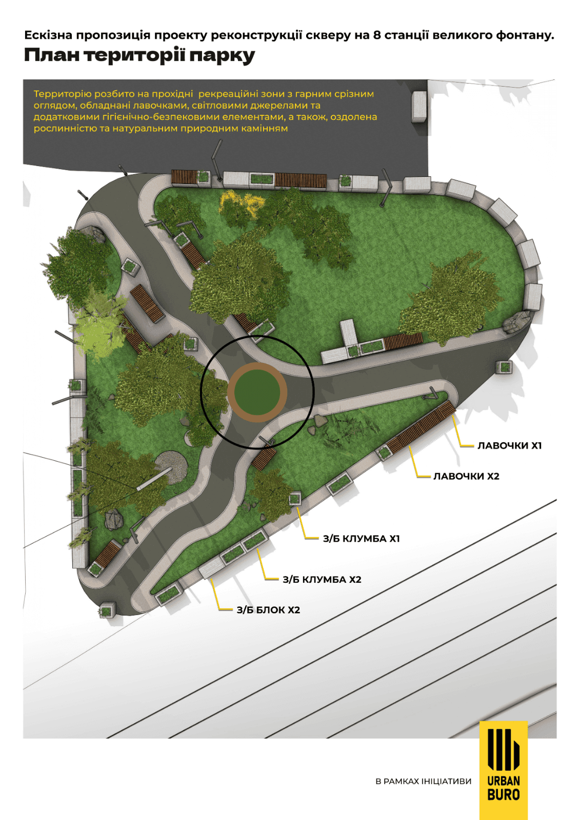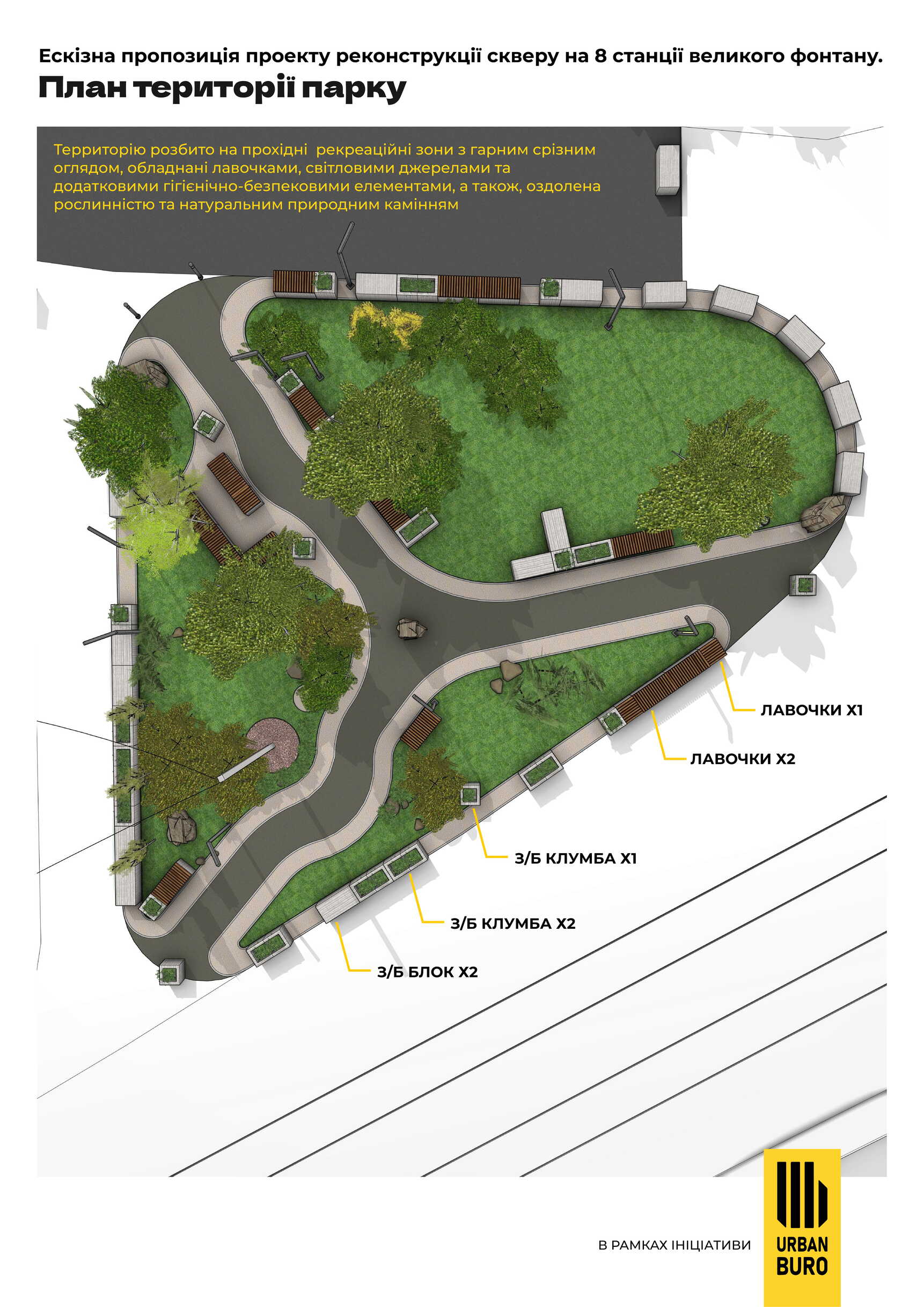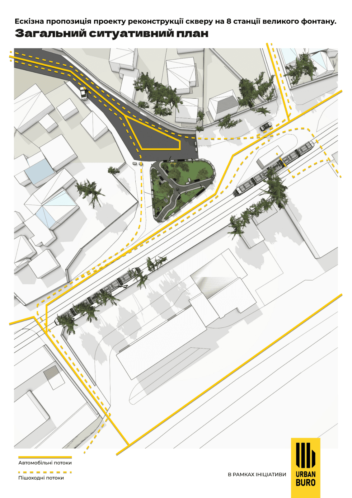 Команда архітекторів за ініціативи URBAN BURO пропонує та презентує попередню концепцію розвитку території скверу на 8 станції Люстдорфської дороги.